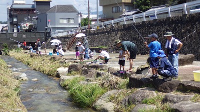 四ツ目川子ども釣り教室の様子